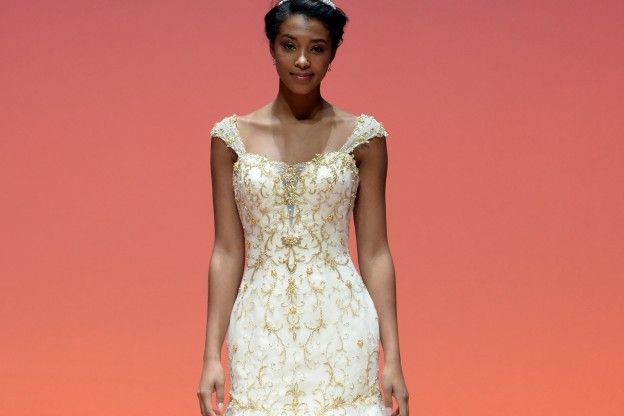 Alle spose dai fianchi larghi o dal fisico a pera si consiglia sempre di evitare abiti che fascino il punto critico come gli abiti a sirena. Meglio puntare su un bustino che valorizzi la parte alta del corpo. Una bella scollatura non troppo profonda metterà in risalto un decolleté generoso distogliendo l’attenzione dai fianchi. Il modello redingote è quello più adatto: è caratterizzato da un bustino attillato su una gonna ampia che poggia morbidamente sui fianchi. Meglio una gonna svasata ma, giocando con la scollatura, andrà anche bene una gonna più dritta.