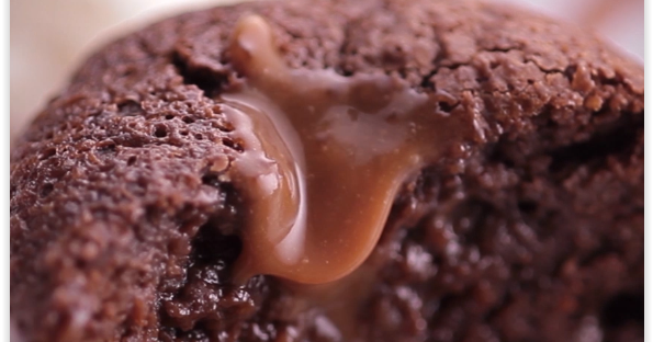 Rompete le uova in un'altra ciotola, unite lo zucchero, la farina, la farina di mandorle, il lievito; unite anche il cioccolato fuso e mescolate bene per amalgamare tutto. Versare l'impasto negli stampini da muffins coprendoli fino a metà, appoggiare una caramella mou su ogni muffins e ricoprire con dell'altro impasto, fino ad arrivare ai 3/4 dello stampino. Cuocere per 30 minuti a 180°.