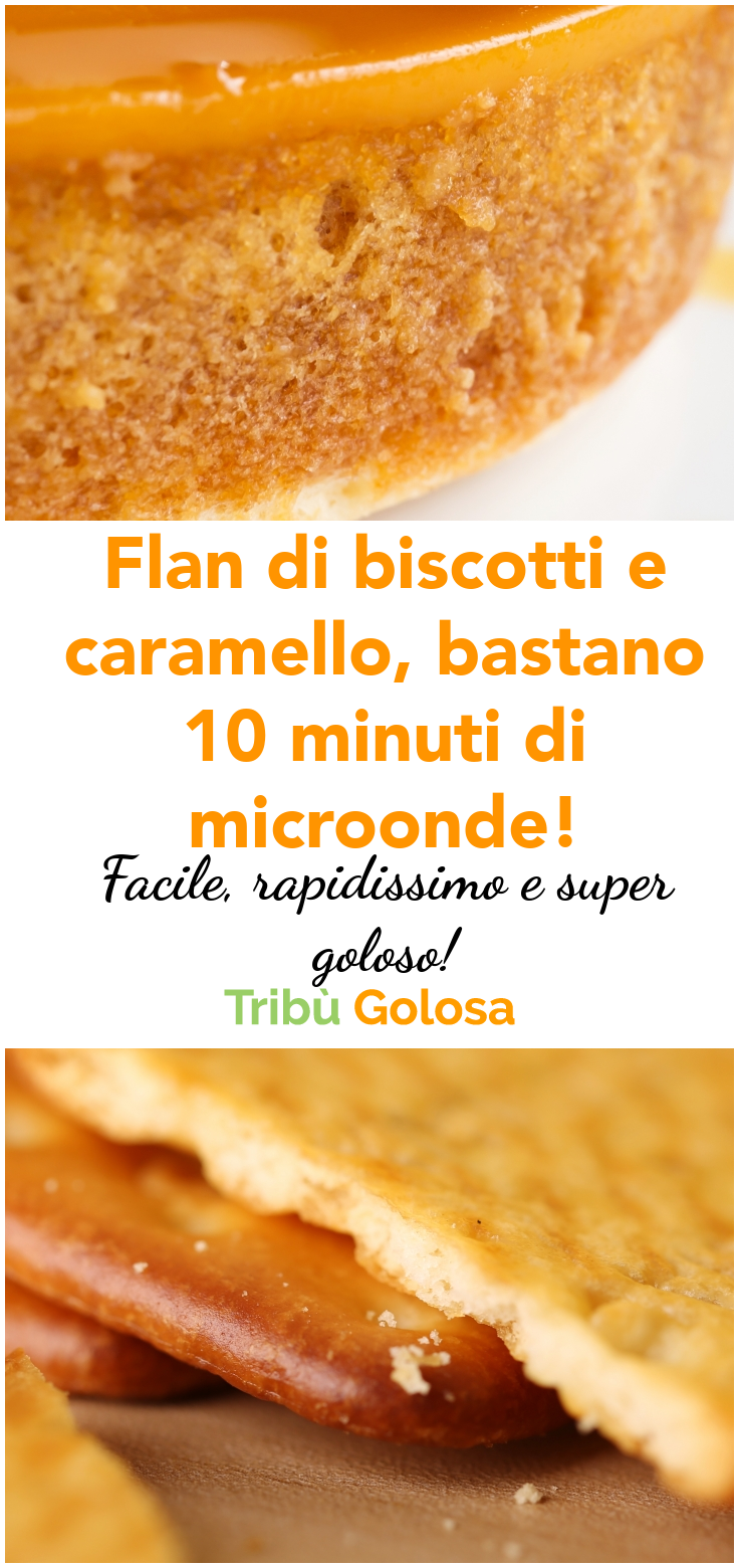 Flan di biscotti e caramello, pronto in microonde in appena 10 minuti!