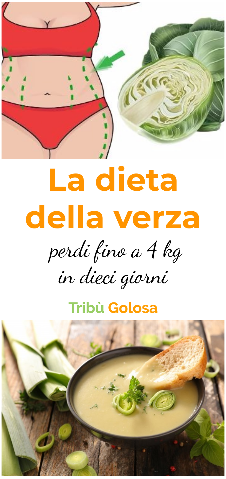 Con la dieta della verza si possono perdere fino a 4 kg in 10 giorni. Per la durata della dieta, i due pasti principali si basano su una zuppa di verze, di cui trovate la ricetta qui di seguito, oltre che frutta e verdura bollita a volontà. Si consiglia di fare sport e di bere almeno due litri di acqua al giorno e di fare esercizio ogni giorno. Non seguire questa dieta senza prima aver consultato il tuo medico.