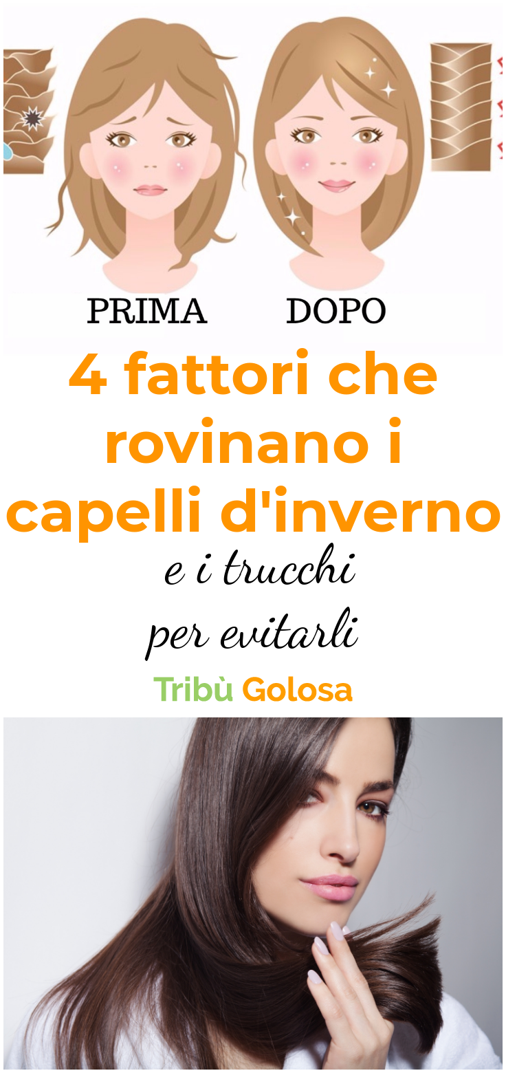Spesso d'inverno capita di passare da un ambiente molto caldo ad uno freddo, in un lasso di tempo molto veloce; l'escursione termica a cui sottoponiamo i capelli li stressa, e non permette loro di adattarsi all'ambiente circostante senza conseguenze. Il cuoio capelluto si secca di più, i capelli sono disidratati e perdono la loro lucentezza, diventando spenti ed opachi. Per questo motivo è importante utilizzare dei prodotti idratanti per i capelli, e fare una maschera 1 volta la settimana.