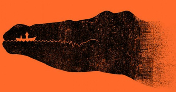 Le 3 immagini principali sono: 1. una montagna che si riflette nell'acqua 2. delle persone su di una barca 3. un coccodrillo