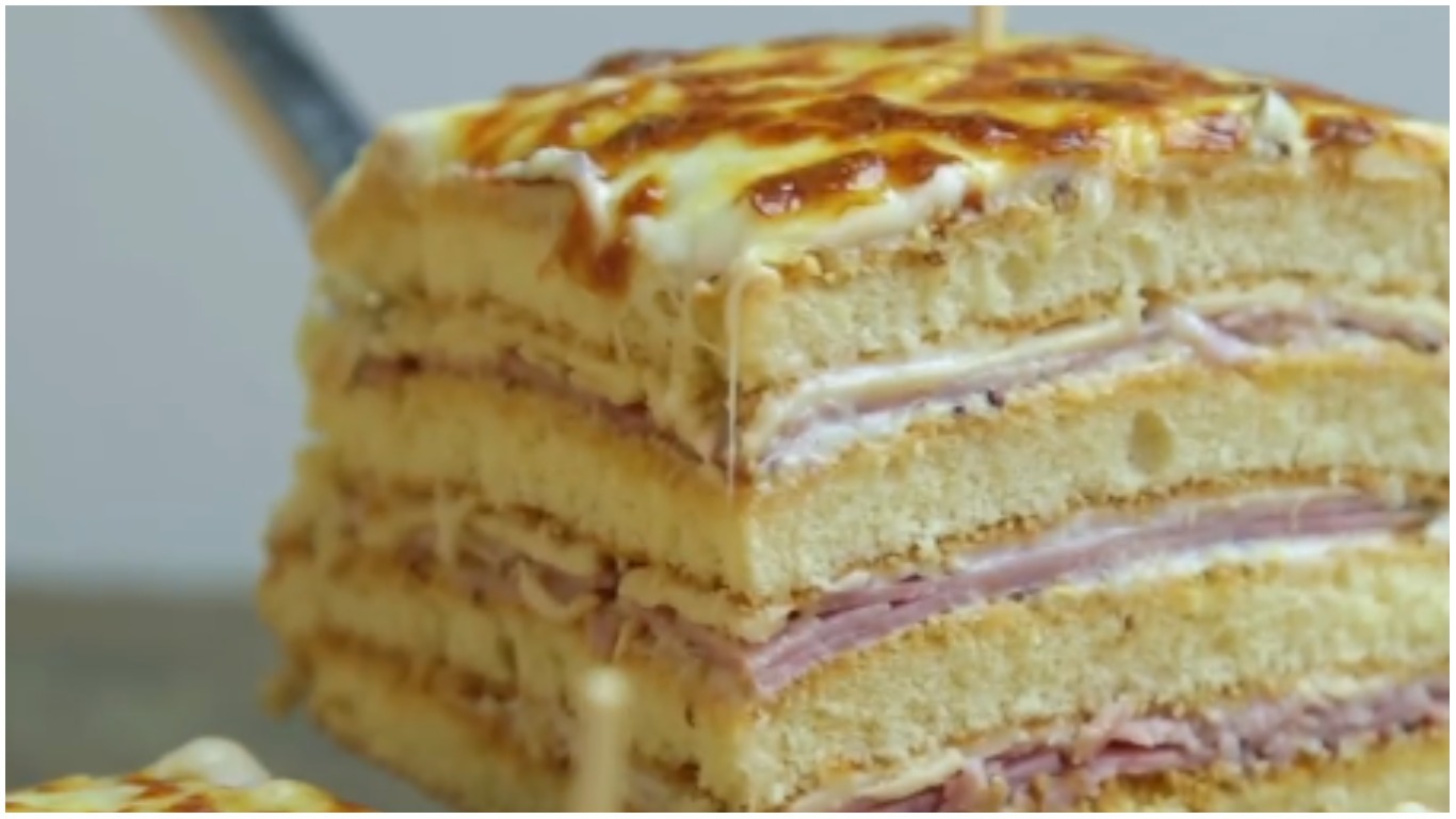 La torta di toast filante al prosciutto e formaggio: tanti strati di bontà!