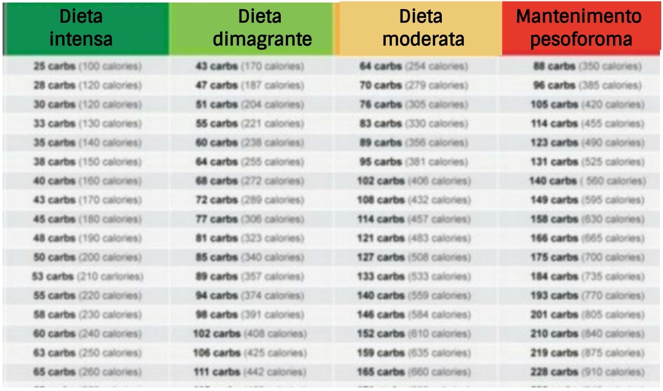 Se sei naturalmente snello e attivo, e vuoi mantenere il peso corporeo e rimanere in buona salute, dovresti mangiare 100-150 grammi di carboidrati ogni giorno.