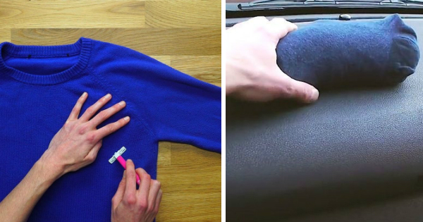 Puoi letteralmente riportare in vita un vecchio maglione se gli togli i pelucchi utilizzando uno dei tuoi rasoi per le gambe.