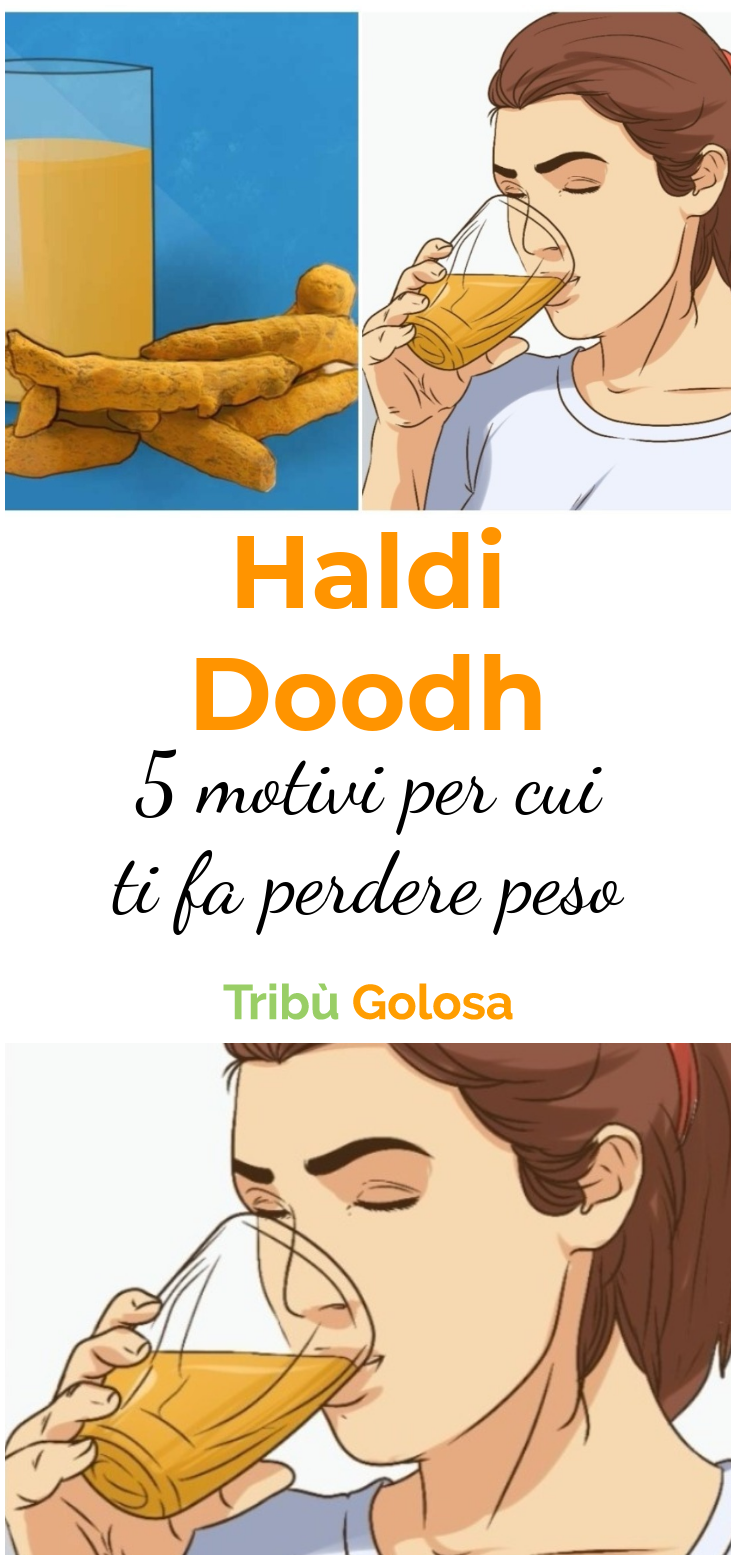 Haldi doodh è una bevanda di origine indiana conosciuta per la cura delle ferite e per il trattamento del raffreddore e della tosse. Haldi, che significa curcuma e che ne indica quindi uno degli ingredienti alla base, è un potente trattamento che alle sue proprietà medicinali e terapeutiche, funziona molto bene per la perdita di peso .L'ideale è bere una tazza di haldi doohd prima di andare a dormire . Ecco perché fa così bene