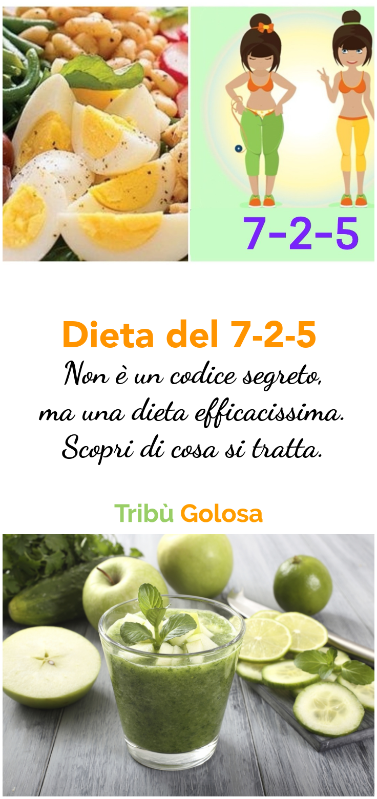 La dieta 7-2-5 è veloce ed efficace se vogliamo perdere peso in poco tempo; infatti, a volte abbiamo bisogno di perdere quei 3 o 4 chili più velocemente a causa di impegni sociali: quel matrimonio o quella comunione cui vogliamo partecipare con l'abito dell'anno scorso ma che non calza come prima a causa degli strappi alla regola sempre più frequenti. Ricorda che, come qualsiasi dieta efficace per perdere peso, è consigliabile cominciarla solo dopo aver consultato il proprio medico di fiducia.