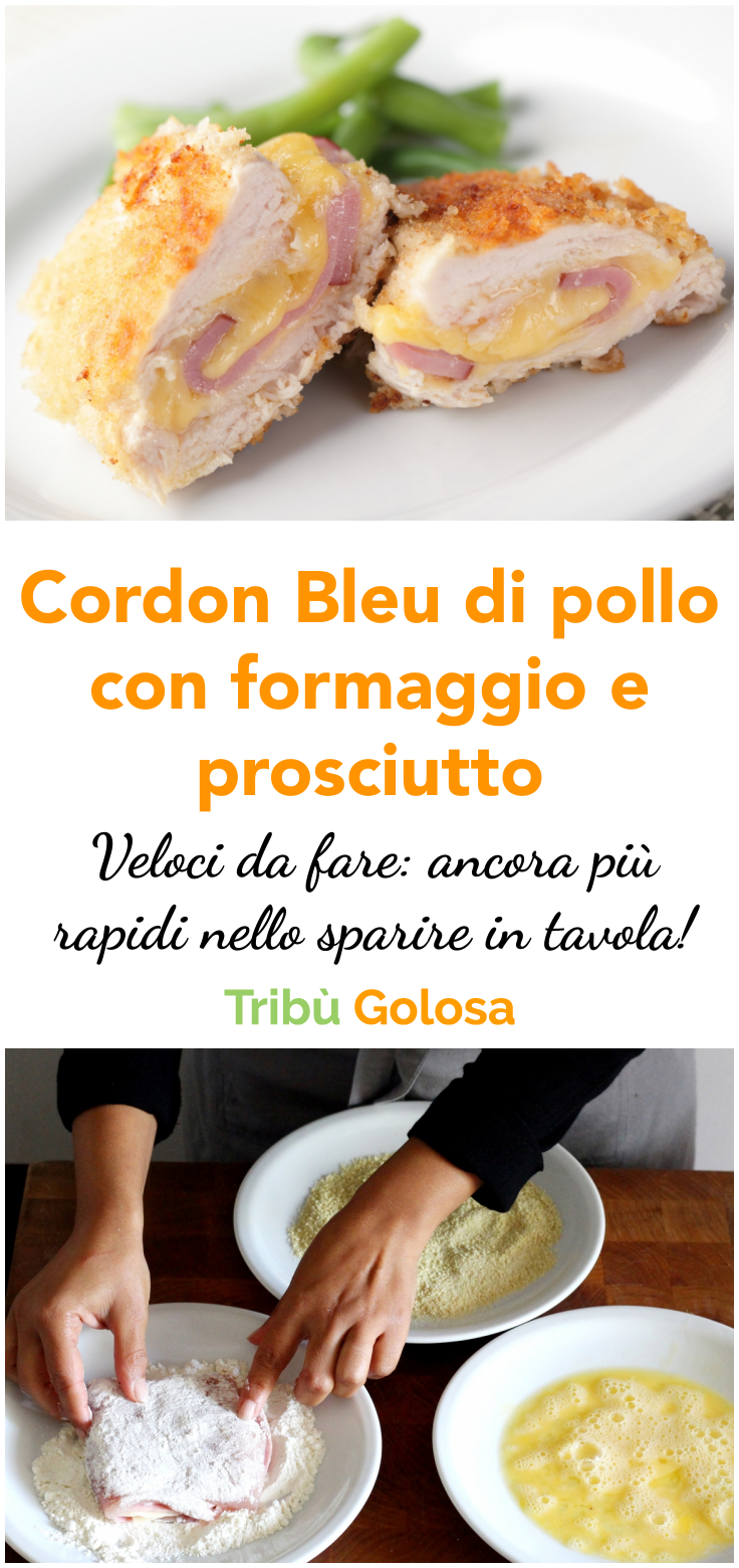 Cordon bleu di pollo ricchi di formaggio filante e goloso prosciutto, veloci da fare: spariranno dalla tavola in un attimo!