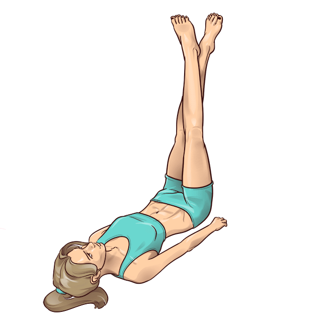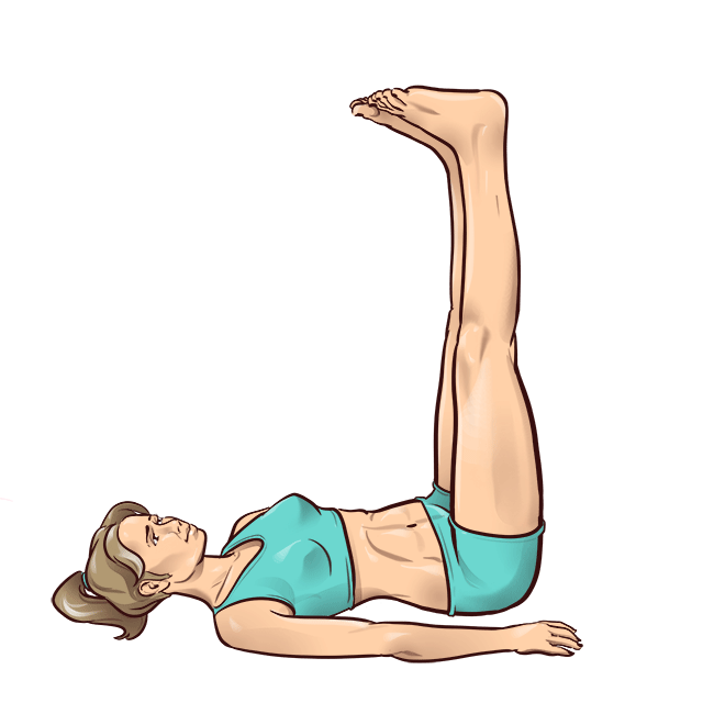 Sdraiatevi sulla schiena, sollevate le gambe e tirate le dita dei piedi tirate verso di voi.