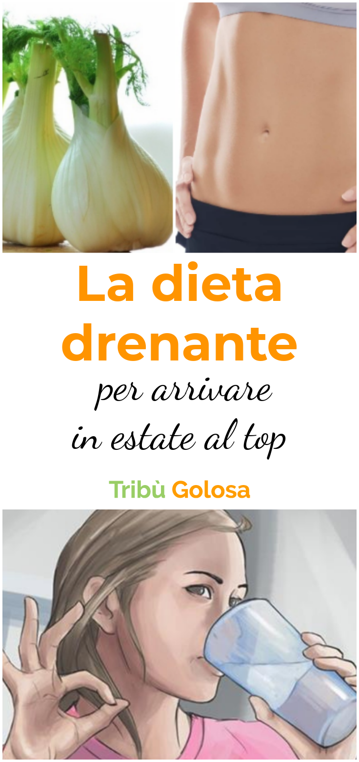 Una dieta drenante, è una dieta che aiuta a eliminare i liquidi in eccesso, regalando una nuova sensazione di benessere e leggerezza. Ha il potere di depurarci dalle tossine e migliorare il funzionamento dei reni. Agisce soprattutto sulle gambe, andandole a sgonfiare, polpacci e sedere, che sono spesso punti critici di accumulo di liquidi nelle donne. Le cause possono essere molteplici: una vita sedentaria, il fatto che troppo spesso si arriva a stento a bere un litro di acqua al giorno, il fumo, lo stress, tutte queste cattive abitudini compromettono il buon funzionamento del microcircolo venoso, creando non pochi danni a livello estetico e vascolare alle nostre gambe. Il problema della ritenzione idrica, infatti, è comune alla maggior parte del mondo femminile e deve essere contrastato in maniera netta ed efficace perché predispone, nel tempo, a problematiche più serie.