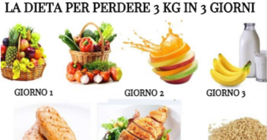 Ecco il menu tipo dei tre giorni, da non prolungare oltre i tre giorni