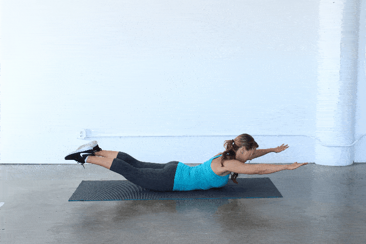 Sdraiatevi a terra a pancia in giù e sollevate insieme braccia e gambe. Ripetete 10 volte, poi riposate 30 secondie e ripetete altre 10 volte.I vostri glutei, addominali e muscoli della schiena vi ringrazieranno