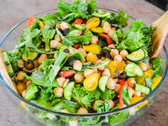 Pranzo: insalata di cavolo verde o rossa che viene mescolata con olio d'oliva, sale, succo di limone, carote e fetta di prezzemolo con zucchine grigliate, peperoni gialli e rossi