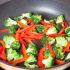 Lavate il broccolo sotto l'acqua corrente. Pelate le carote con il pelapatate, lavatele e tagliatele a bastoncino.  Lavate anche il peperone e tagliate anch'esso a bastoncino.