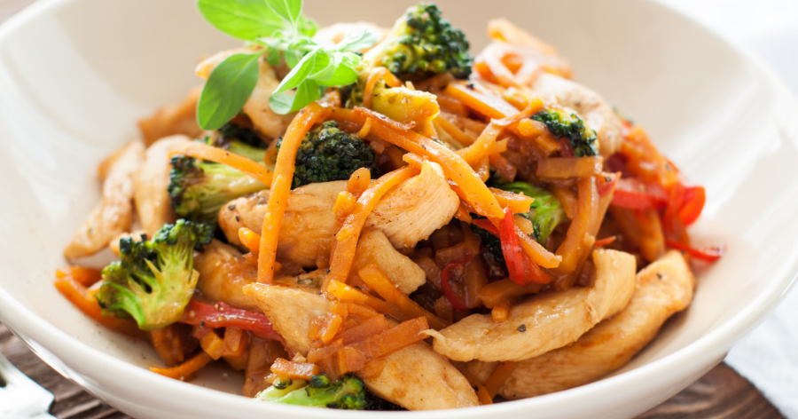 Delizioso petto di pollo saltato in padella con verdure