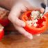 Lavate i pomodori e tagliate la calotta con un coltello ben affilato. Svuotate il contenuto dei pomodori e mettetli sopra un piatto con della carta assorbente, posizionandoli a "testa in giu'" per farli sgocciolare e perdere l'acqua di vegetazione in eccesso. Tagliate la carota a pezzettini, fate lo stesso con il sedano, dopo aver eliminato le estremità più verdi ed i filamenti.