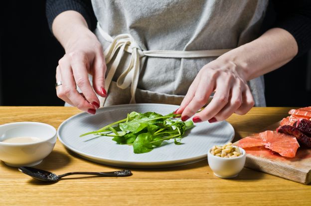 Eventualmente, potete servire l'insalata direttamente nei piatti, mettendo qualche foglia di insalata in modo decorativo.