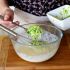 Tagliate i pomodorini a metà, affettate la cipolla di Tropea molto sottile. Tagliate i peperoni a filetti.