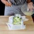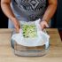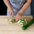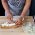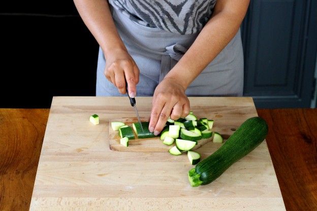 Preriscaldate il forno a 200°. Lavate le zucchine e tagliatele a cubetti, poi sbollentatele in acqua bollente per 5 minuti.