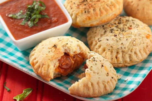 Un'altra idea originale per l'aperitivo: chiudere un cuore di pomodoro e mozzarella in due dischi di pasta per la pizza, da leccarsi i baffi!