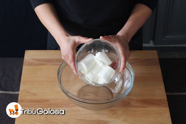 Incidere la pasta a metà nel senso della larghezza, creando due mezzelune, quindi ricavare circa 12 rettangoli.