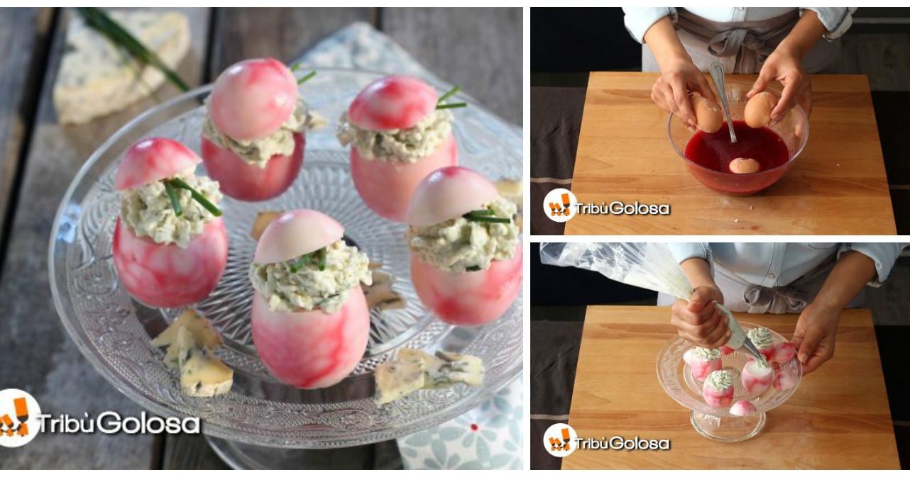 Uova marmorizzate ripiene di crema al gorgonzola