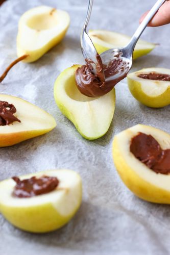 Farcite ogni mezza pera con circa un cucchiaio di Nutella.