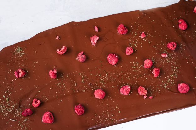 Cospargi la superficie delle tavolette con i restanti lamponi disidratati e lascia solidificare all'aria.