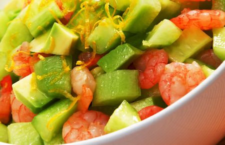 Insalata di cetrioli, avocado e gamberetti