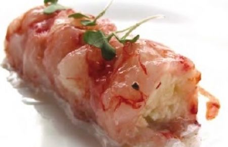 Cilindro di gamberi rossi con tartare di bufala campana agli agrumi