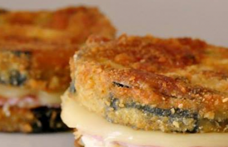 Sandwich di melanzane con pollo, prosciutto e formaggio