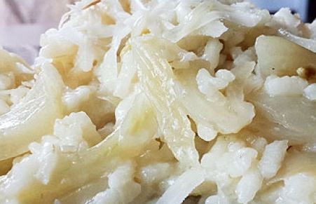 Con il risotto al finocchio che ho preparato per la ricetta di oggi, vi do qualche buon consiglio per utilizzare questo magnifico ortaggio in una maniera un pochino diversa dal solito. Già di per se l’abbinamento del risotto con i finocchi non è propriamente usuale, ma vi assicuro che il risultato, anche grazie ad una sfumata di spumante brut ed alla cottura del riso stesso nel brodo fatto con gli avanzi del finocchio, ci dona una primo piatto dal sapore davvero delicatissimo. Questo risotto al finocchio, inoltre, è ottimo per un pasto leggero perché, aggiungendo un pizzico di sale al soffritto, la cipolla rilascia i suoi liquidi e rende il tutto meno pesante e soprattutto salutare, grazie alle proprietà diuretiche e digestive del finocchio. Trovi qui tutte le foto che abbiamo ricevuto per questa ricetta di Risotto al finocchio.