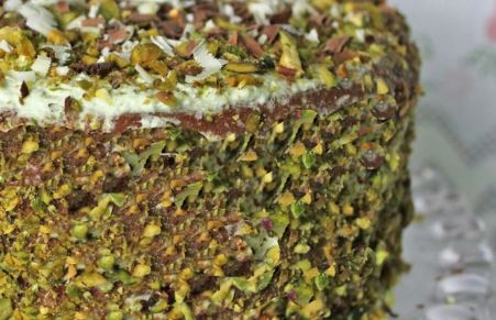 Torta margherita con crema chantilly, gocce di cioccolato e pistacchi
