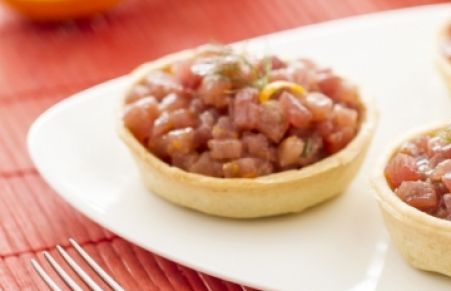 La tartare di tonno può essere servita da sola oppure in monoporzioni preparando dei gusci di pasta brisè da riempire con paio di cucchiai di tartare.