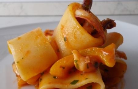 Era da tempo che volevo provare questo primo piatto, mi girava l'dea in testa e finalmente oggi, complici dei peperoni che stazionavano in frigorifero, mi sono decisa!!! nella mia cucina è rimasto un profumino. Trovi qui tutte le foto che abbiamo ricevuto per questa ricetta di Calamarata con totani e peperoni.