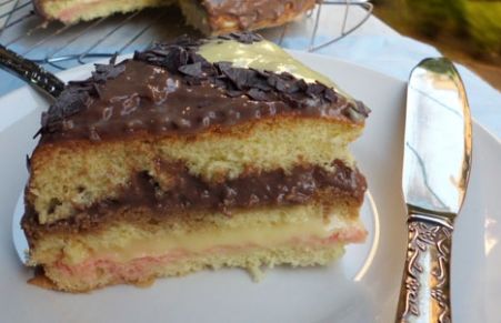La pizza dogge abruzzese è un pan di spagna farcito con crema al limone e crema al cioccolato a strati… una delizia! Trovi qui tutte le foto che abbiamo ricevuto per questa ricetta di Pizza Dolce abruzzese.