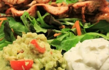 Spiedini di pollo alla messicana con guacamole e yogurth greco