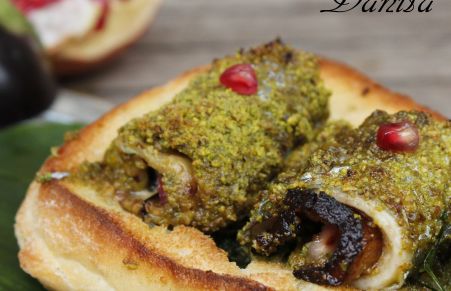 Involtini di pesce spatola con melanzane e melagrana
