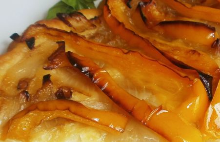 Focaccia di kamut e farro con patate, peperoni e rucola