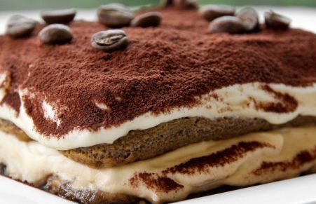 TIRAMISÙ CON PANNA E CHICCHI DI CAFFÈ RICOPERTI DI CIOCCOLATO FONDENTE