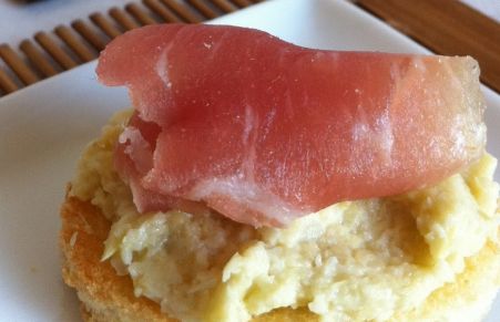Crostini con crema di carciofi e prosciutto crudo