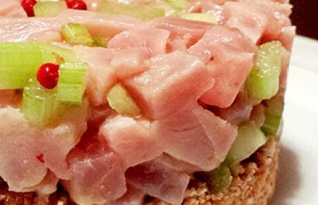 Stavo pensando a questa tartare di tonno e sedano su letto croccante da un po’ di giorni. Era un’idea che mi balenava in mente e che ancora non avevo avuto modo di sperimentare. Stasera, siccome sono tornata con un paio di ore di anticipo dal lavoro, ho capito che era il momento giusto per provare a realizzare questa ricetta! Ho tagliato a dadini i due splendidi filetti di tonno pinne gialle che avevo acquistato qualche giorno fa, ho amalgamato il tutto con dei croccanti tocchettini di sedano e li ho lasciati marinare in un intingolo di olio e limone, il tutto impreziosito da qualche chicco di pepe rosa. Ho poi cercato di abbinare a questa classica tartare di tonno, qualcosa di croccante e saporito per avere un piatto completo ed originale. Avevo pensato di utilizzare del pane tostato, ma poi ho virato verso le mie fette biscottate integrali preferite. Le ho tritate con un cucchiaio di olio ed uno spicchio d’aglio, trasformandole nel letto croccante per la mia tartare! Il risultato finale è stato davvero eccellente, oltre le mie più rosee aspettative e, quando il mio compagno, stasera a cena, ha esclamato: “Amore, oggi ti sei davvero superata!”, ho avuto la conferma di aver realizzato qualcosa di veramente delizioso! Trovi qui tutte le foto che abbiamo ricevuto per questa ricetta di Tartare di tonno e sedano su letto croccante.