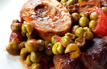 L’ossobuco con piselli è un classica ricetta della tradizione gastronomica italiana, soprattutto della regione Lombardia dove viene servita anche accompagnata al classico risotto allo zafferano. L’ossobuco con piselli è un secondo piatto di carne robusto e pieno di sapore che a tavola fa sempre la sua bella figura. La ricetta che vi propongo io, che è la stessa che ha sempre preparato e che mi ha insegnato mia madre, è molto semplice da cucinare e, a differenza della ricetta classica, è realizzata aggiungendo anche dei pomodori pelati che conferiscono ulteriore gusto a questa ottimo secondo piatto. Trovi qui tutte le foto che abbiamo ricevuto per questa ricetta di Ossobuco con piselli.