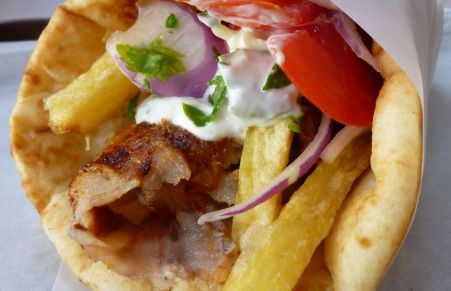 PITA GYROS FETA AL FORNO E PITHIVIER DI ZUCCA RICOTTA E SPECK