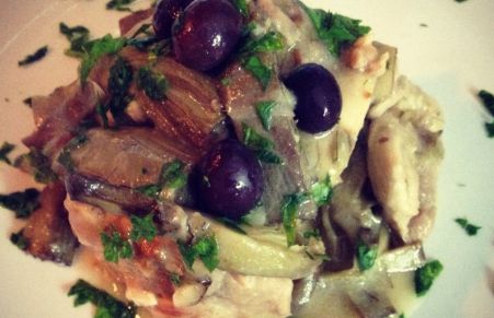 Pollo al vino bianco e carciofi