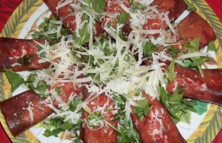 Involtini di bresaola in letto di rucola e scaglie di Grana