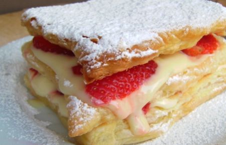 Fresca, piacevole, fruttosa, adatta per il periodo caldo, da gustare a fine pranzo o come spuntino pomeridiano. Trovi qui tutte le foto che abbiamo ricevuto per questa ricetta di Millefoglie alla crema pasticcera e fragole.
