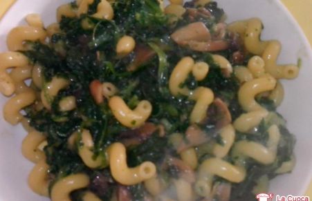 Pasta con funghi e spinaci