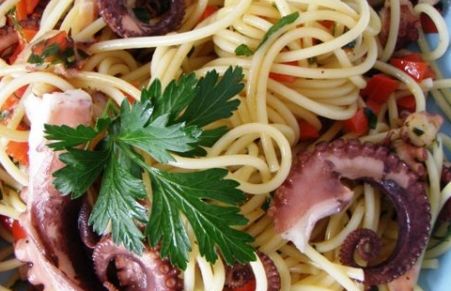 Spaghetti con polpo e zucchine