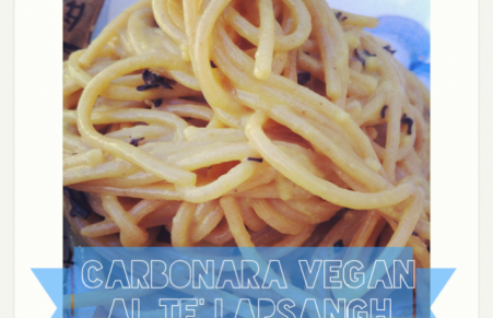 spaghetti alla carbonara in chiave vegan, ovvero senza utilizzo di ingredienti di origine animale Trovi qui tutte le foto che abbiamo ricevuto per questa ricetta di Carbonara vegan al tè lapsangh.